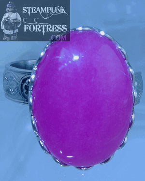SILVER JADE GEMSTONE HOT PINK ADJUSTABLE RING STONES STARR WILDE STEAMPUNK FORTRESS