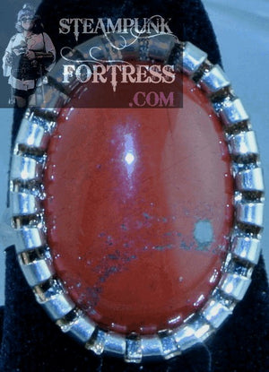 SILVER JASPER RED GEMSTONE SILVER OVAL FOLDED EDGE STONES ADJUSTABLE RING STARR WILDE STEAMPUNK FORTRESS