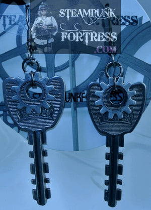 THIS IS A FABULOUS HANDMADE CUSTOM MADE STEAMPUNK DIESELPUNK CYBERPUNK, MEDIEVAL, RENAISSANCE, VICTORIAN, RENAISSANCE, EDWARDIAN, COSPLAY, COSTUME, SDCC, COMIC CON….. PIERCED EARRINGS....SILVER TONE....1 SILVER TONE MASTER LOCK KEY AND 1 SMALL OPEN GEAR ON EACH HOOK.......#1214