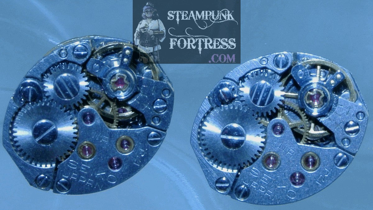 SILVER SEIKO MOVEMENTS COMPLETE AUTHENTIC GENUINE WATCH CLOCK STUDS PIERCED EARRINGS STARR WILDE STEAMPUNK FORTRESS