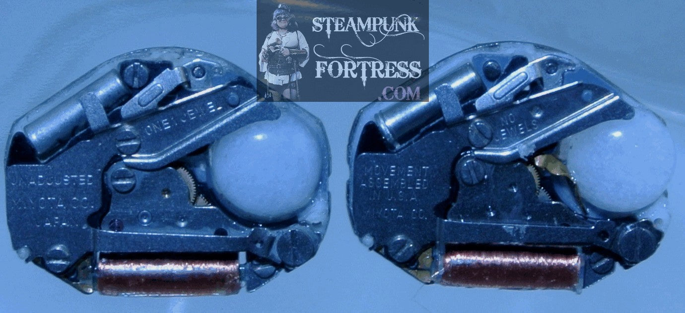 SILVER MOVEMENTS MIYOTA COMPLETE AUTHENTIC GENUINE WATCH CLOCK WHITE JADE GEMSTONES STONES STUDS PIERCED EARRINGS STARR WILDE STEAMPUNK FORTRESS