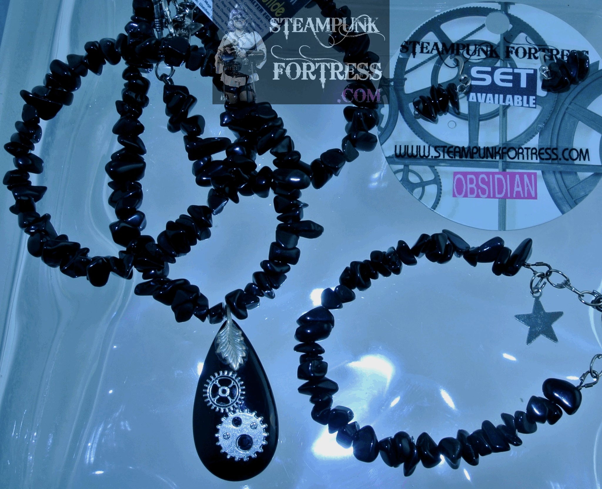 SILVER OBSIDIAN 5 CHIPS GEMSTONES STONES PIERCED EARRINGS SET AVAILABLE STARR WILDE STEAMPUNK FORTRESS