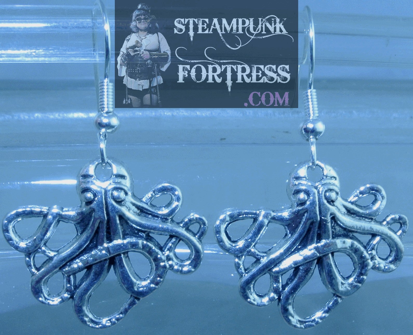 THIS IS A FABULOUS HANDMADE CUSTOM MADE STEAMPUNK DIESELPUNK CYBERPUNK, MEDIEVAL, RENAISSANCE, VICTORIAN, RENAISSANCE, EDWARDIAN, COSPLAY, COSTUME, SDCC, COMIC CON…..PIERCED EARRINGS.....SILVER TONE....1 SILVER TONE MEDIUM OCTOPUS ON EACH HOOK.......#5995