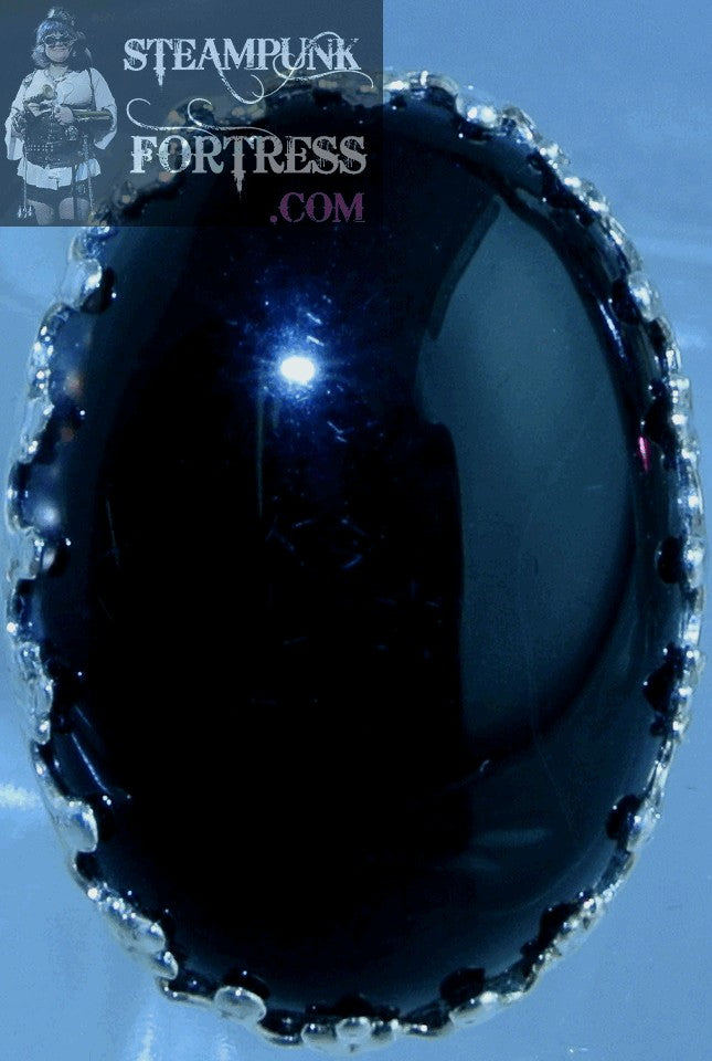 THIS IS A FABULOUS HANDMADE CUSTOM MADE STEAMPUNK DIESELPUNK CYBERPUNK, MEDIEVAL, RENAISSANCE, VICTORIAN, RENAISSANCE, EDWARDIAN, COSPLAY COSTUME COMIC CON….… ADJUSTABLE STEAMPUNK RING..BLACK ONYX SILVER TONE OVAL POINTY EDGE RING....#797