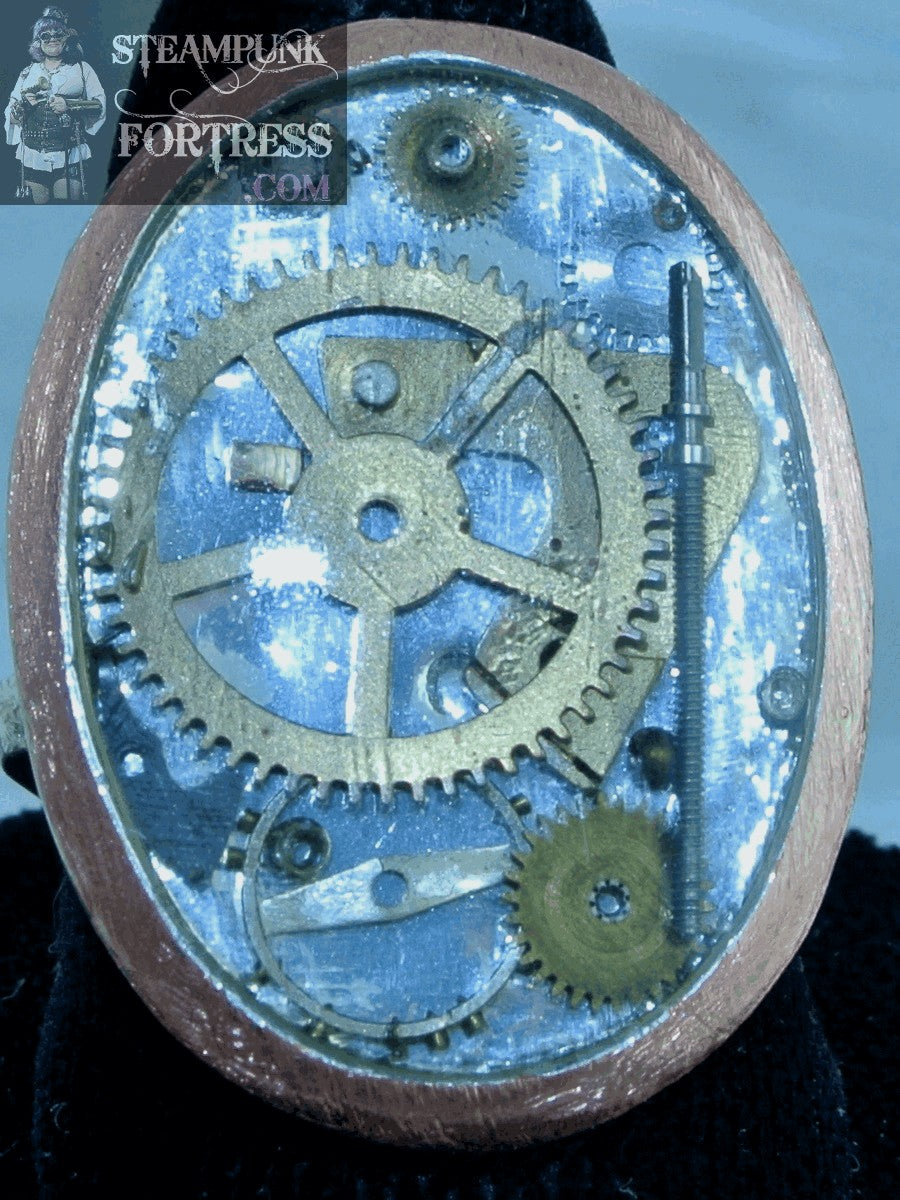 SILVER OVAL 20MM X 25MM GOLD GEARS STEM COPPER EDGE AUTHENTIC GENUINE WATCH CLOCK ADJUSTABLE RING STARR WILDE STEAMPUNK FORTRESS
