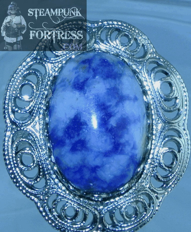 THIS IS A FABULOUS HANDMADE CUSTOM MADE STEAMPUNK DIESELPUNK CYBERPUNK, MEDIEVAL, RENAISSANCE, VICTORIAN, RENAISSANCE, EDWARDIAN, COSPLAY COSTUME COMIC CON….… ADJUSTABLE STEAMPUNK RING....SILVER TONE...SODALITE GEMSTONE.......#2892