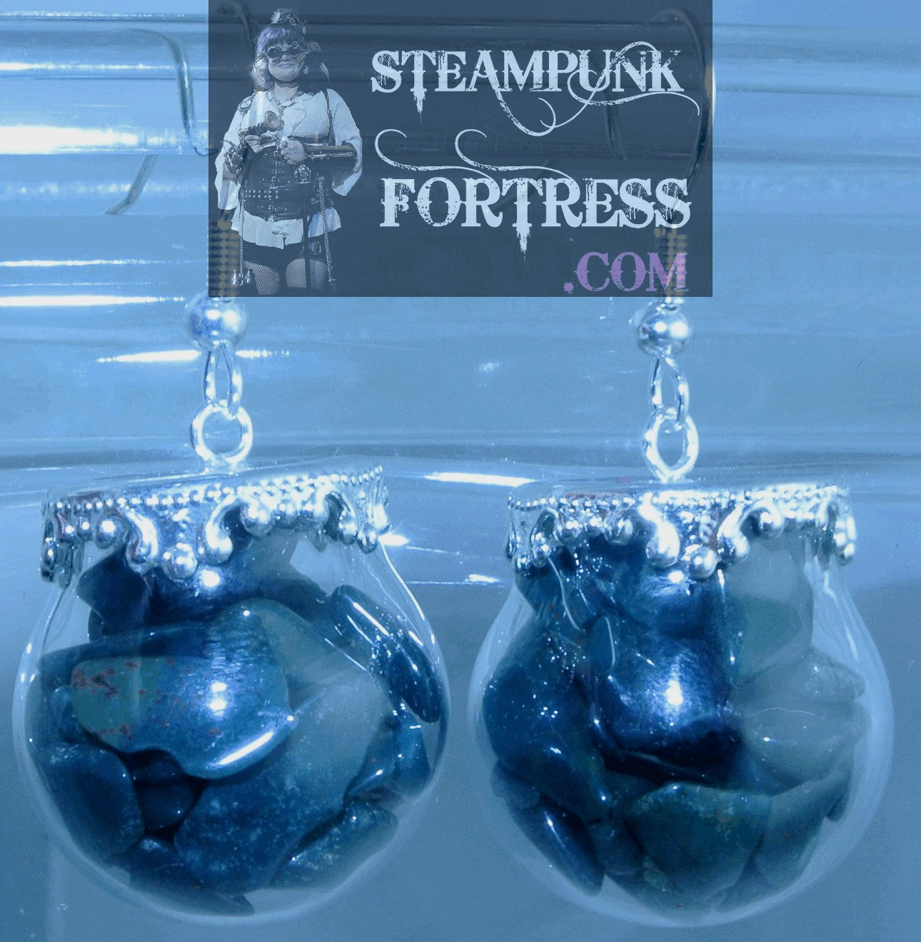 SILVER VIALS GLOBES BLOODSTONE HELIOTROPE GEMSTONES STONES CHIPS PIERCED EARRINGS STARR WILDE STEAMPUNK FORTRESS