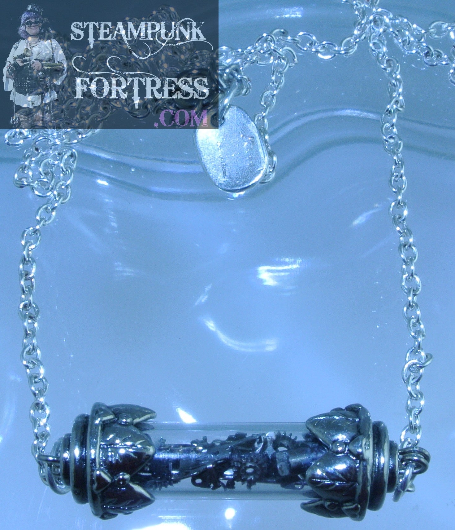 SILVER VIAL SCROLL GLASS SILVER AUTHENTIC GENUINE WATCH CLOCK GEARS CHAIN NECKLACE STARR WILDE STEAMPUNK FORTRESS