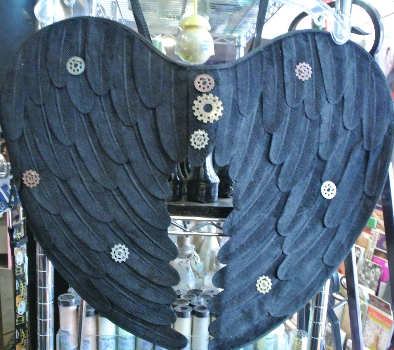 THIS IS A FABULOUS BLACK CLOTH FEATHER WINGS...GREAT FOR COSPLAY AT COMIC CONVENTIONS ....THIS ONE HAS 9 GEARS....#6373