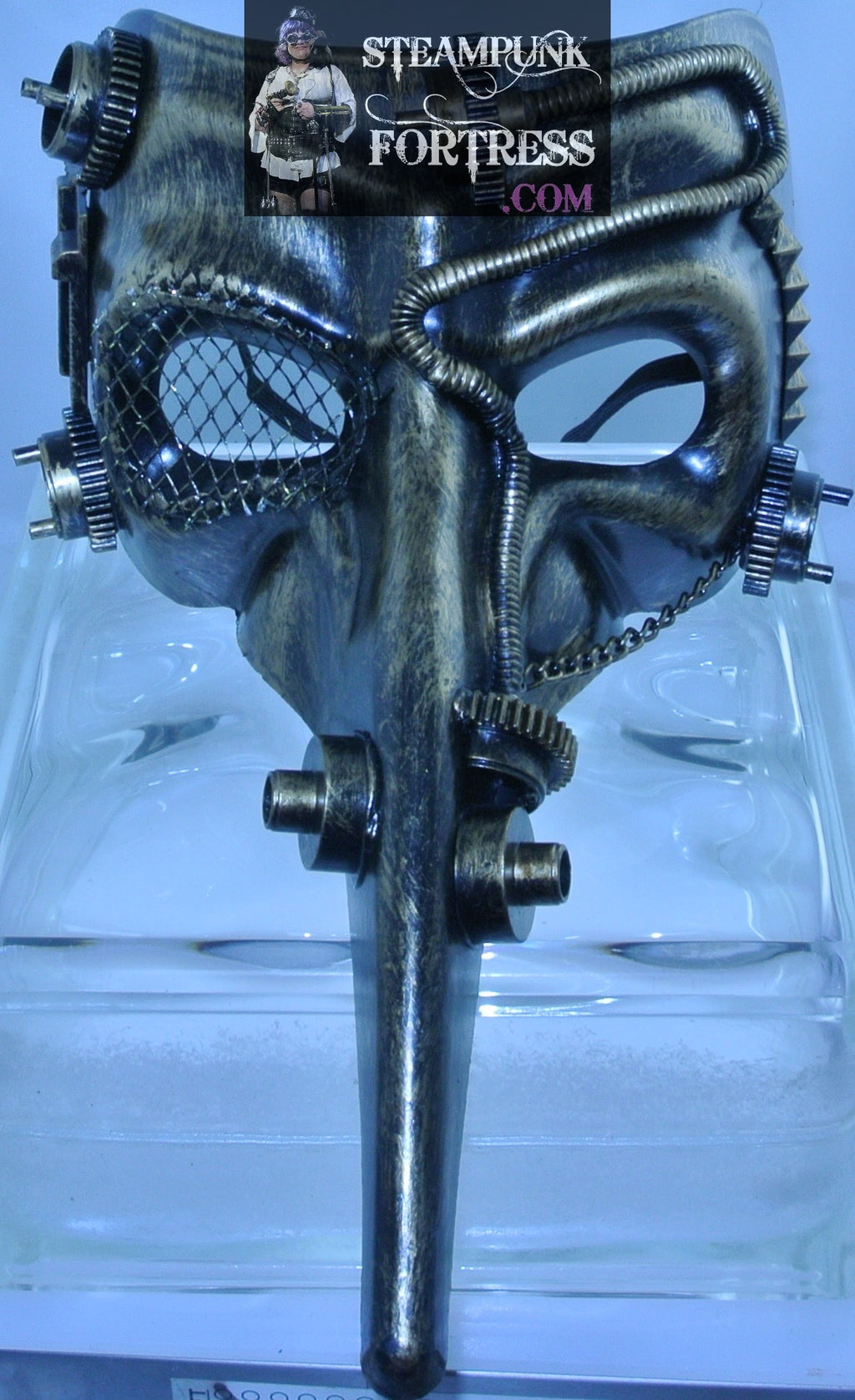 BEAUTIFUL VENETIAN CARNIVALE STEAMPUNK BRASS GOLD PLAGUE DOCTOR DR MASK LONG NOSE RAVEN BIRD WATCH CLOCK GEARS MESH EYE COSPLAY COSTUME HALLOWEEN- MASS PRODUCED- DISCONTINUED