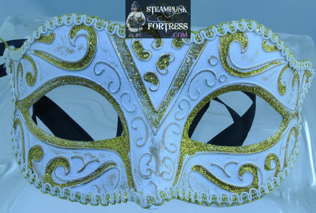 BEAUTIFUL WHITE MASK GOLD SPARKLY MASQUERADE MARDI GRAS VENETIAN CARNIVALE STEAMPUNK EYE MASK COSPLAY COSTUME HALLOWEEN- MASS PRODUCED