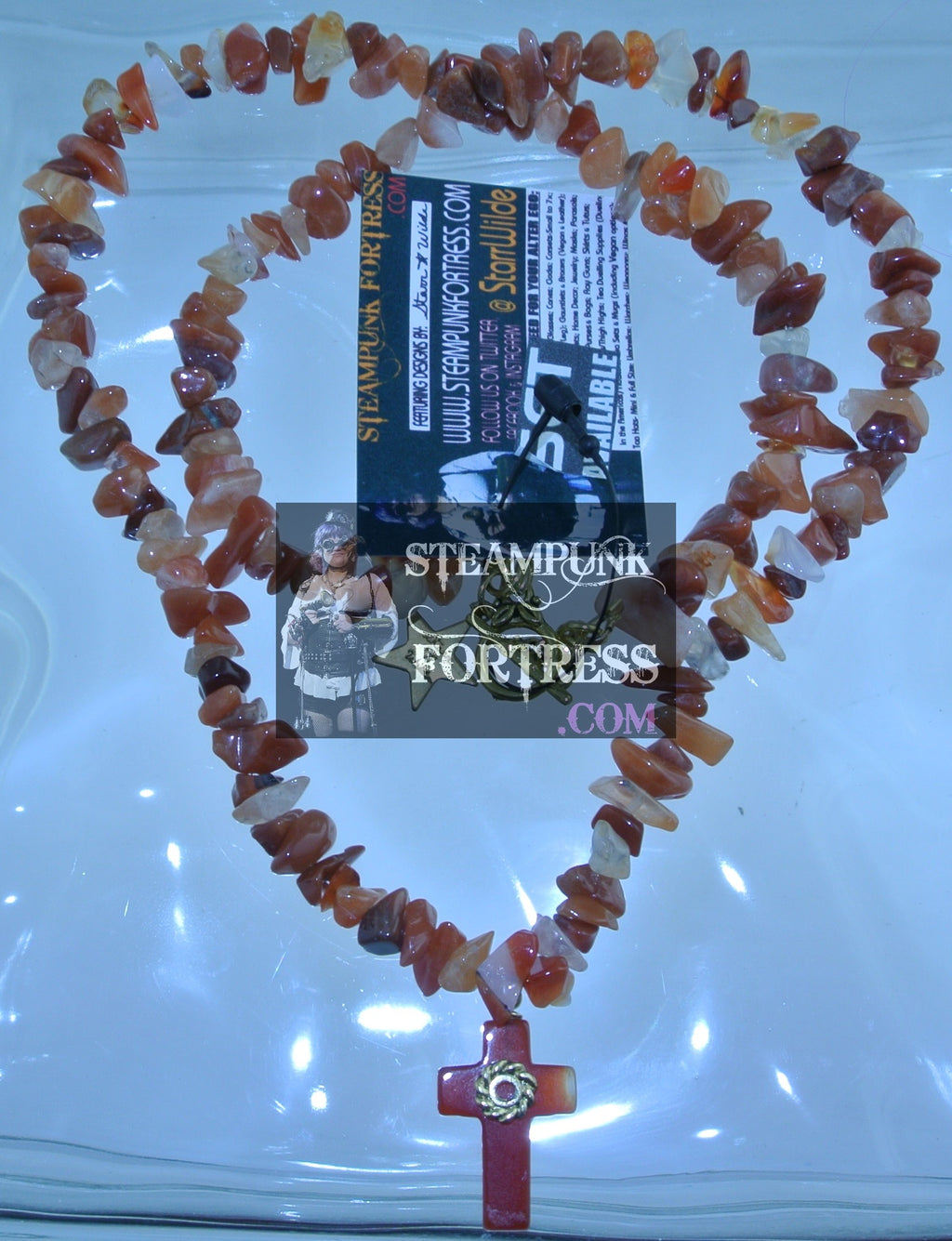 GOLD AGATE RED CROSS GEMSTONES STONES CHIPS GOLD WATCH CLOCK GEAR CHIPS NECKLACE SET AVAILABLE 2 SIDED REVERSIBLE STARR WILDE STEAMPUNK FORTRESS