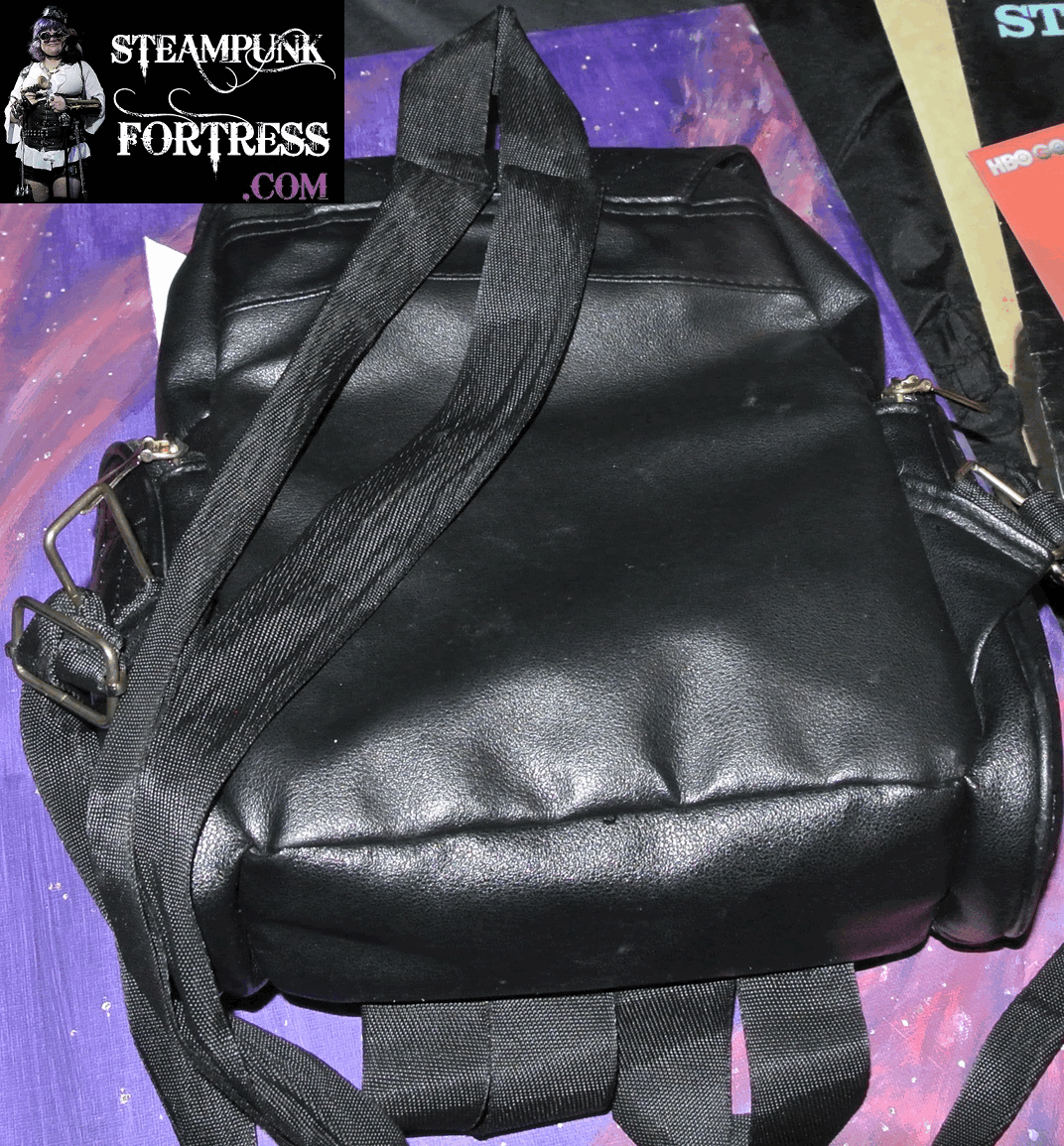 THIS IS A FABULOUS BLACK OWL PURSE BACKPACK STYLE...STEAMPUNK COSTUME FUN...HAS GOLD TRIM AROUND EYES AND GOLD STITCHING....ADJUSTABLE SHOULDER STRAPS....SMALL OPEN POCKET INSIDE ZIPPER AND FLAP MAGNET CLOSURE AND 2 ZIP SIDE POCKETS...I JUST HAVE TOO MANY BAGS RIGHT NOW....#8094