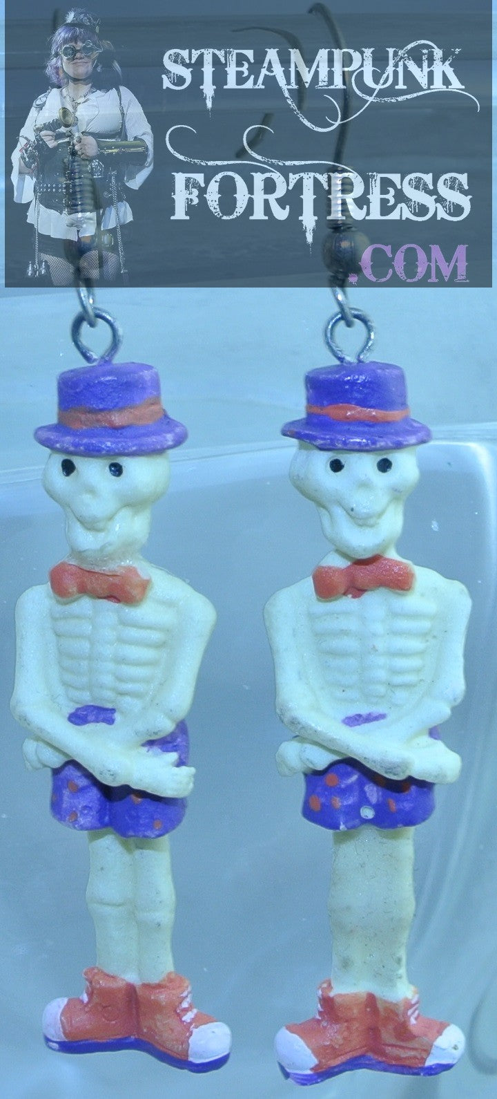 GLOW IN THE DARK FULL SKELETONS PURPLE HATS SHORTS HALLOWEEN BOW TIE ORANGE SILVER PIERCED EARRINGS STARR WILDE STEAMPUNK FORTRESS