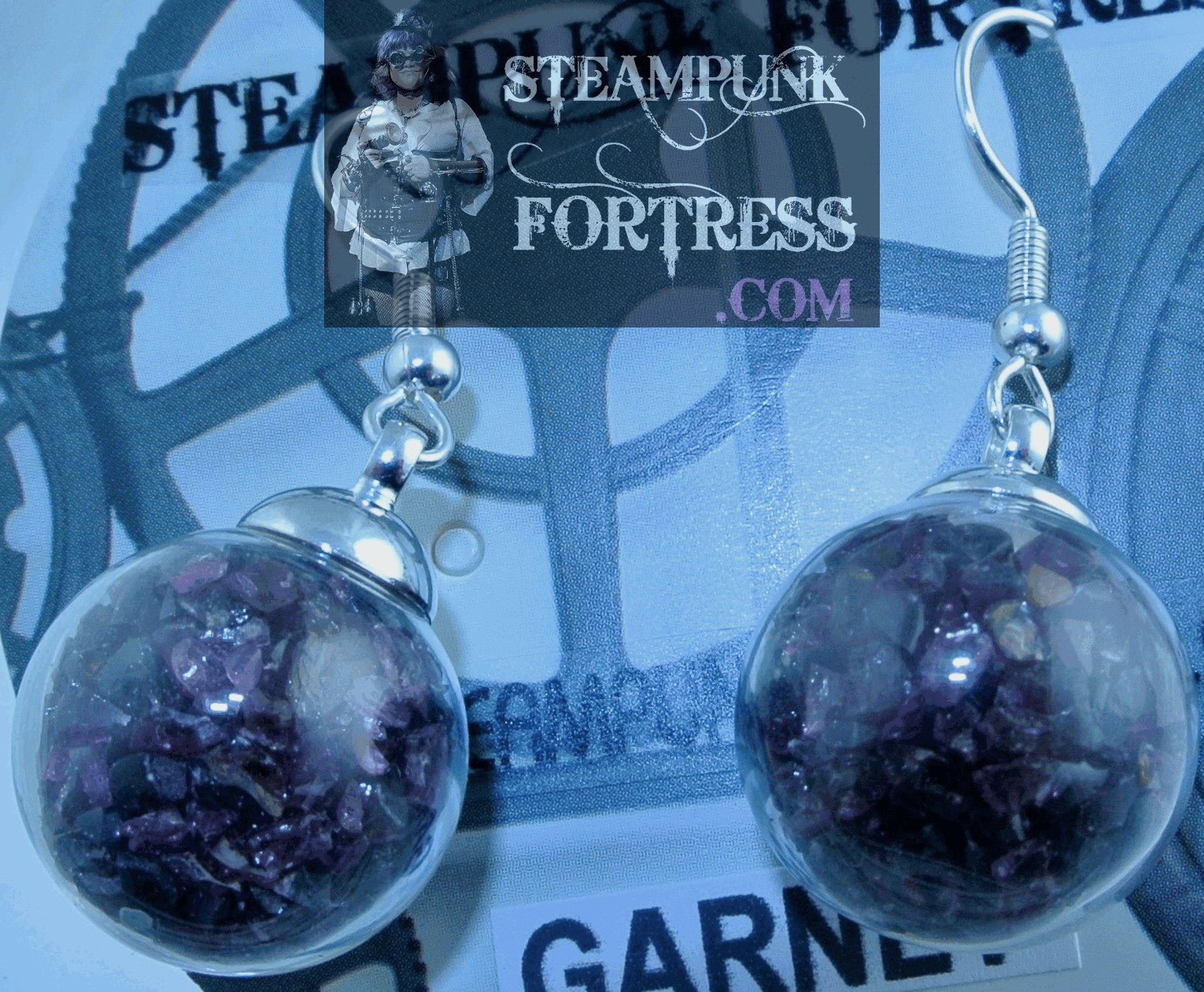 THIS IS A FABULOUS HANDMADE CUSTOM MADE STEAMPUNK DIESELPUNK CYBERPUNK, MEDIEVAL, RENAISSANCE, VICTORIAN, RENAISSANCE, EDWARDIAN, COSPLAY COSTUME COMIC CON…PIERCED EARRINGS....SILVER TONE....1 16MM GLOBE FILLED WITH GARNET GEMSTONE CHIPS ON EACH HOOK.......#4419