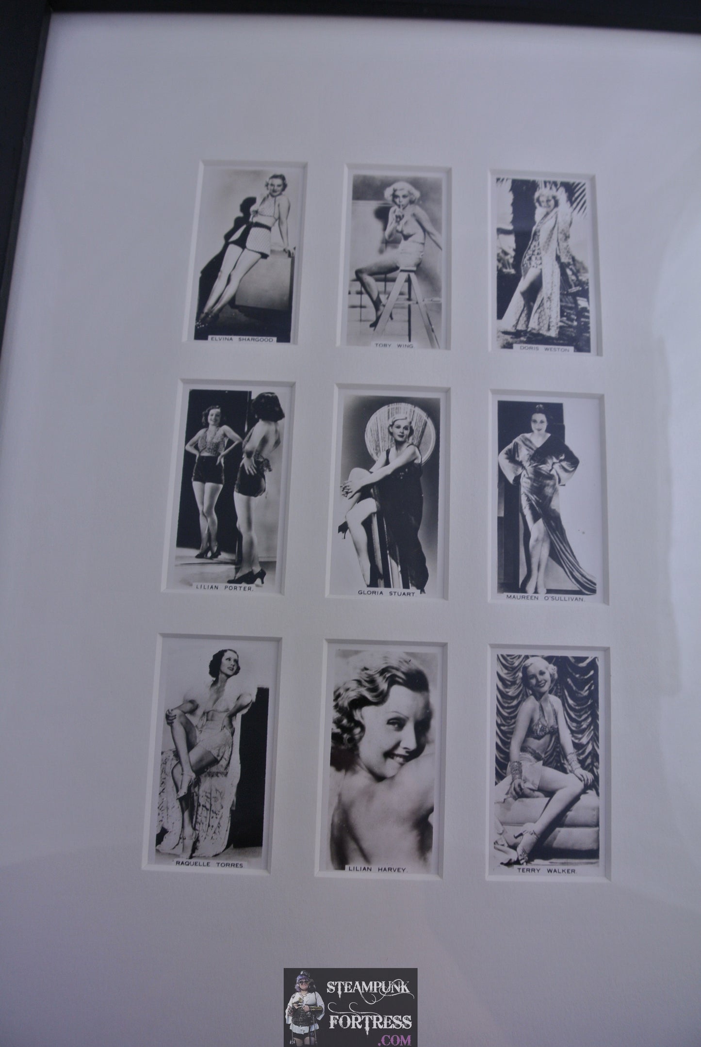 2 VINTAGE FRAME LOT OF CIGARETTE CARDS 18 HOLLYWOOD STARLETS GLORIA STUART TOBY WING