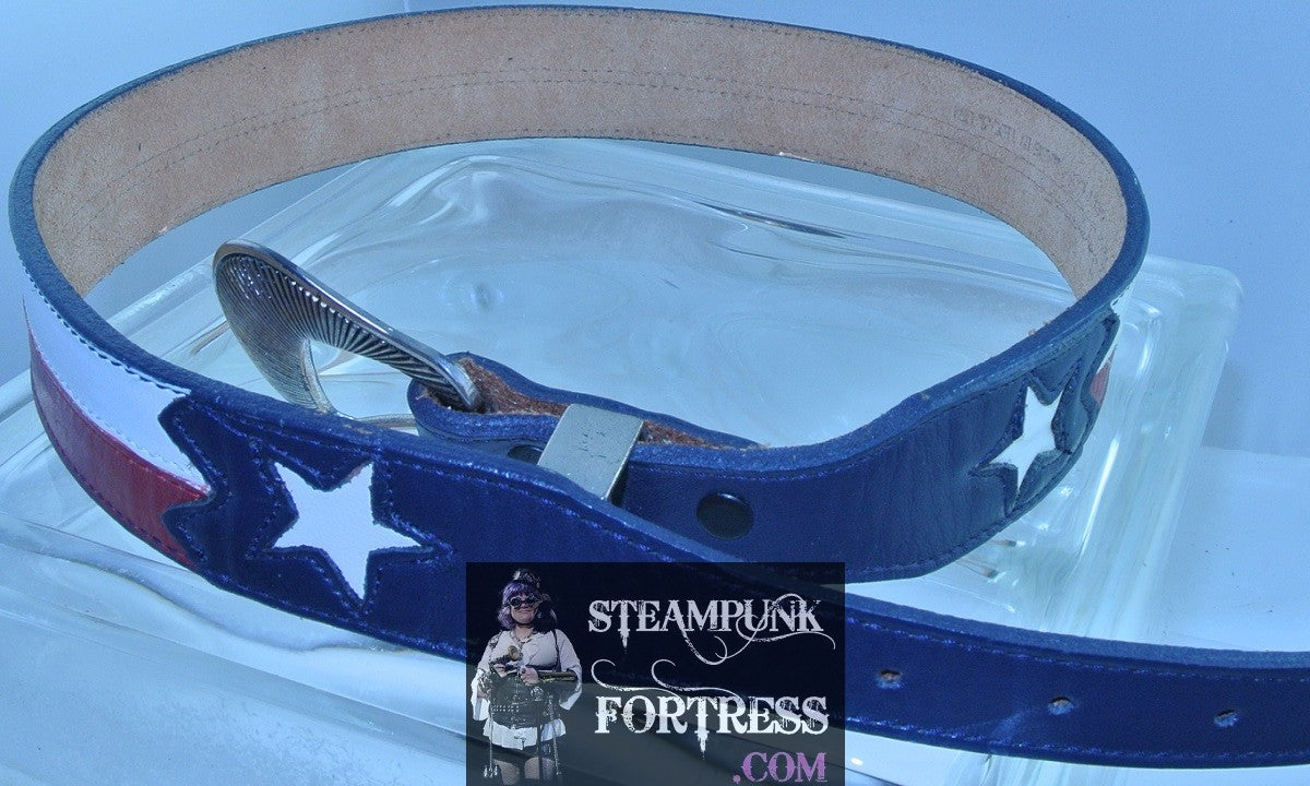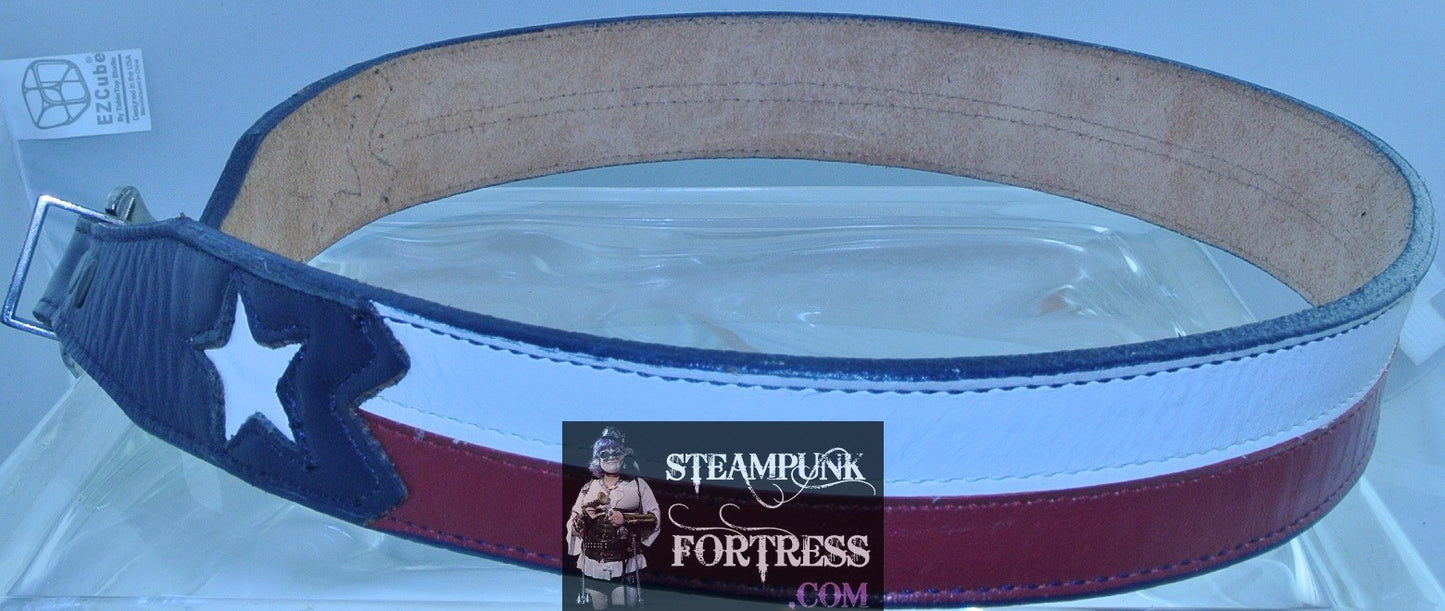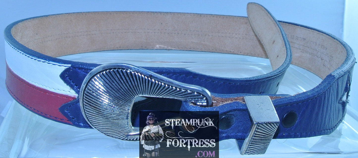 BELT VINTAGE NOCANO RED WHITE BLUE STARS STRIPES JULY 4TH LEATHER SMALL MEDIUM- MASS PRODUCED