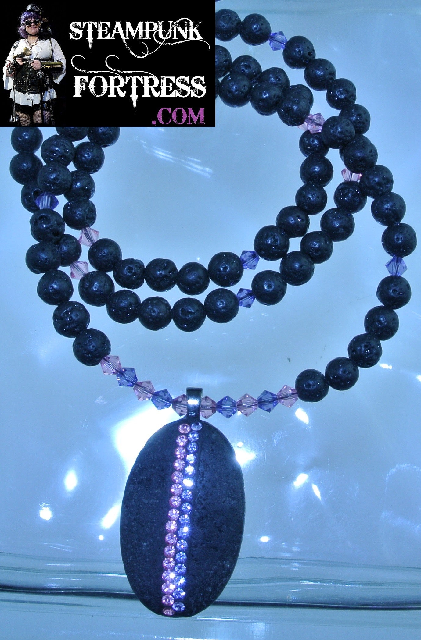 BLACK LAVA ROCK GEMSTONES STONES ROUNDS PINK PURPLE SWAROVSKI CRYSTALS NECKLACE SET AVAILABLE STARR WILDE STEAMPUNK FORTRESS