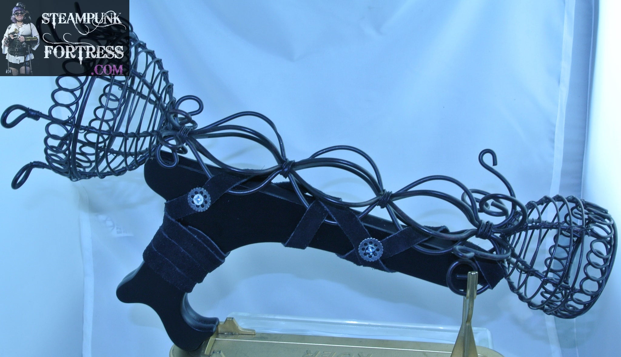 BLACK WIRE TOP SILVER GEARS BLACK SUEDE WRAP RAY GUN STARR WILDE STEAMPUNK FORTRESS COSPLAY COSTUME