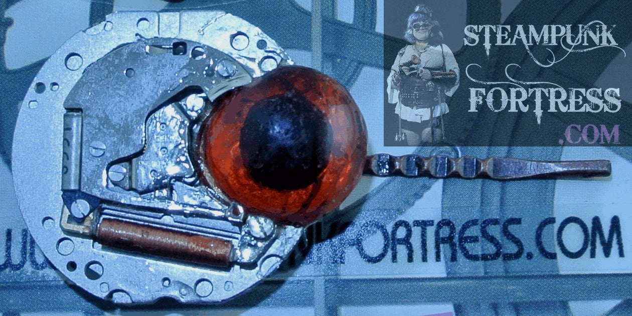 THIS IS A FABULOUS HANDMADE CUSTOM MADE STEAMPUNK DIESELPUNK CYBERPUNK HAIR ACCESSORY... ...COPPER BOBBY PIN...SILVER MOVEMENT WITH RED EYE...#2325
