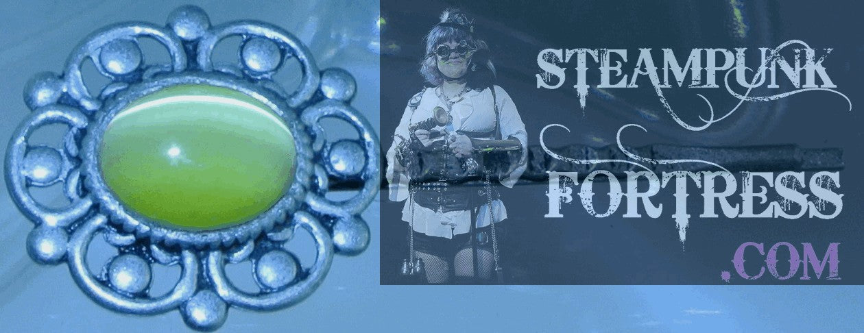 Bags & Purses; Barrettes & Hair combs, Hair Tiaras; Binoculars/Opera Glasses; BTS merchandise- Photocards, custom jewelry etc; Canes- including telescope canes and ones that break down; Clocks; Crossbows-Wrist Gauntlets; Fans; Garters-Arm & Leg for Men and Women; Gauntlets & Bracers (including Vegan options); Gloves; Goggles & Glasses; Hats & Helmets; Home Decor- including Christmas Ornaments & Wreaths; Jewelry- Bracelets, Cufflinks, Earrings- Clips & Pierced, Necklaces, Pins/Brooches, Rings, Tie Tacks & More; Masks; Parasols; Pocketwatches; Purses; Ray Guns; Skirt Lifters; Stockings/Thigh Highs; Tea Dueling Supplies (including Vegan options); Top Hats- Mini & Full; Umbrellas; Vintage Ladies Jewelry Collection- Performers from the Belle Epoque photos into jewelry; Watches; Weaponry-Knives & Swords (Real and Replica); Wings and More. Starr can also repair your precious jewelry, restring pearls, change pierced earrings to clip earrings or clip earrings to pierced earrings. She can also work with you to design a custom piece of jewelry or hat, or weapons etc. She can also customize any piece we have in stock such as adding a veil to a hat, etc. Call or e-mail to make an appointment. Visit our store: Steampunk Fortress.
