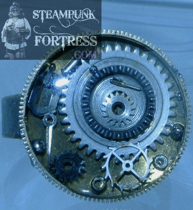 BRASS .66" WATCH CASE CLOCK SILVER GEARS AUTHENTIC GENUINE HANDS ADJUSTABLE RING STARR WILDE STEAMPUNK FORTRESS