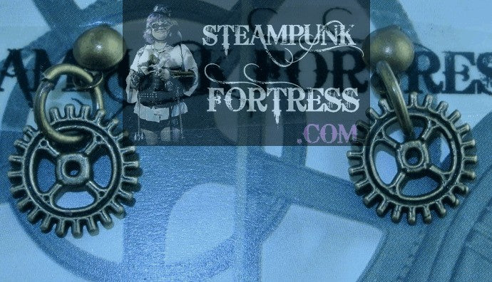 BRASS GEARS 4 ARM STUDS WATCH CLOCK PIERCED EARRINGS STARR WILDE STEAMPUNK FORTRESS