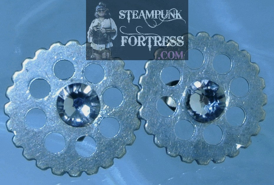 THIS IS A FABULOUS HANDMADE CUSTOM MADE STEAMPUNK DIESELPUNK CYBERPUNK, MEDIEVAL, RENAISSANCE, VICTORIAN, RENAISSANCE, EDWARDIAN, COSPLAY, COSTUME, SDCC, COMIC CON…..PIERCED EARRINGS...BRASS ROUND GEARS STUDS WITH GREIGE SWAROVSKI CRYSTALS............#3085