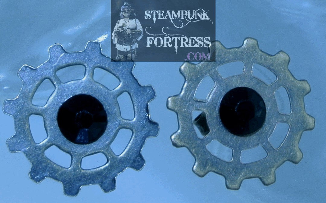 THIS IS A FABULOUS HANDMADE CUSTOM MADE STEAMPUNK DIESELPUNK CYBERPUNK, MEDIEVAL, RENAISSANCE, VICTORIAN, RENAISSANCE, EDWARDIAN, COSPLAY, COSTUME, SDCC, COMIC CON…..PIERCED EARRINGS...STUDS...1 BRASS SPOKE GEAR AND 1 BLACK SWAROVSKI CRYSTAL ON EACH STUD.......#1610