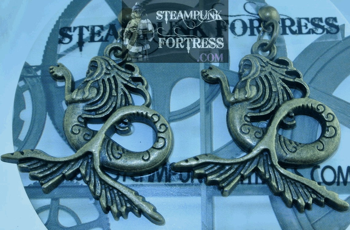 THIS IS A FABULOUS HANDMADE CUSTOM MADE STEAMPUNK DIESELPUNK CYBERPUNK, MEDIEVAL, RENAISSANCE, VICTORIAN, RENAISSANCE, EDWARDIAN, COSPLAY COSTUME COMIC CON… PIERCED EARRINGS...BRASS...1 BRASS MERMAID ON EACH STUD.......#5580