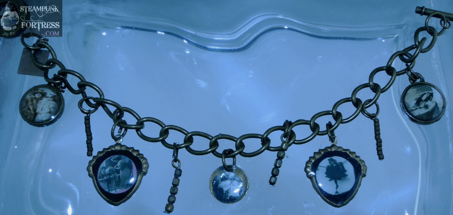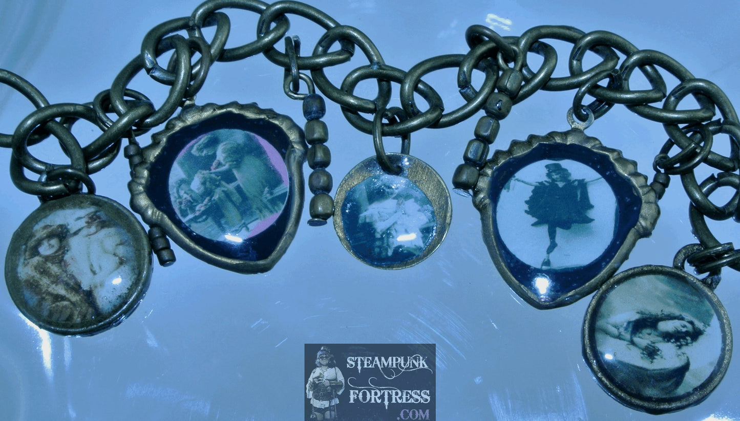 THIS IS A FABULOUS HANDMADE CUSTOM MADE STEAMPUNK DIESELPUNK CYBERPUNK, MEDIEVAL, RENAISSANCE, VICTORIAN, EDWARDIAN, COSPLAY, COSTUME, SDCC, COMIC CON….. BRASS BRACELET WITH 3 ROUND CHARMS VINTAGE LADY LADIES 2 SHIELD LADIES CHARMS BRASS BEADS....PART OF OUR VINTAGE LADIES COLLECTION..#4760