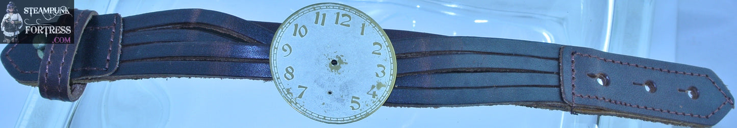 BROWN FAUX LEATHER CRISS CROSS BAND BRACELET AUTHENTIC GENUINE WATCH CLOCK FACE DIAL STARR WILDE STEAMPUNK FORTRESS