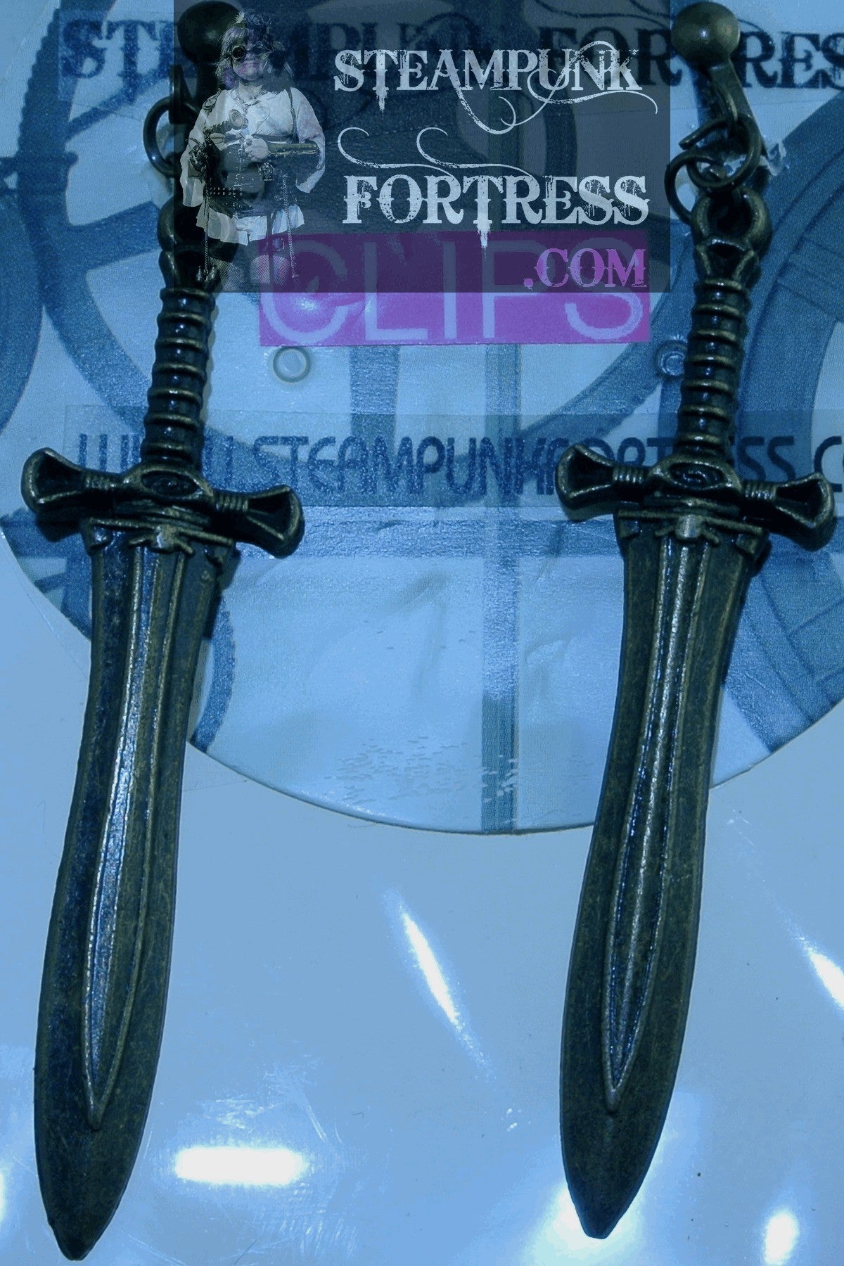 CLIPS BRASS SWORDS BROADSWORDS CLIP ON EARRINGS VIKINGS HALLOWEEN GAME OF THRONES COSPLAY COSTUME STARR WILDE STEAMPUNK FORTRESS