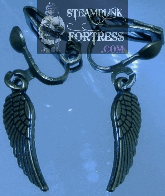CLIPS BRASS WINGS SMALL CLIP ON EARRINGS FAIRY FAIRIES COSTUME COSPLAY STARR WILDE STEAMPUNK FORTRESS
