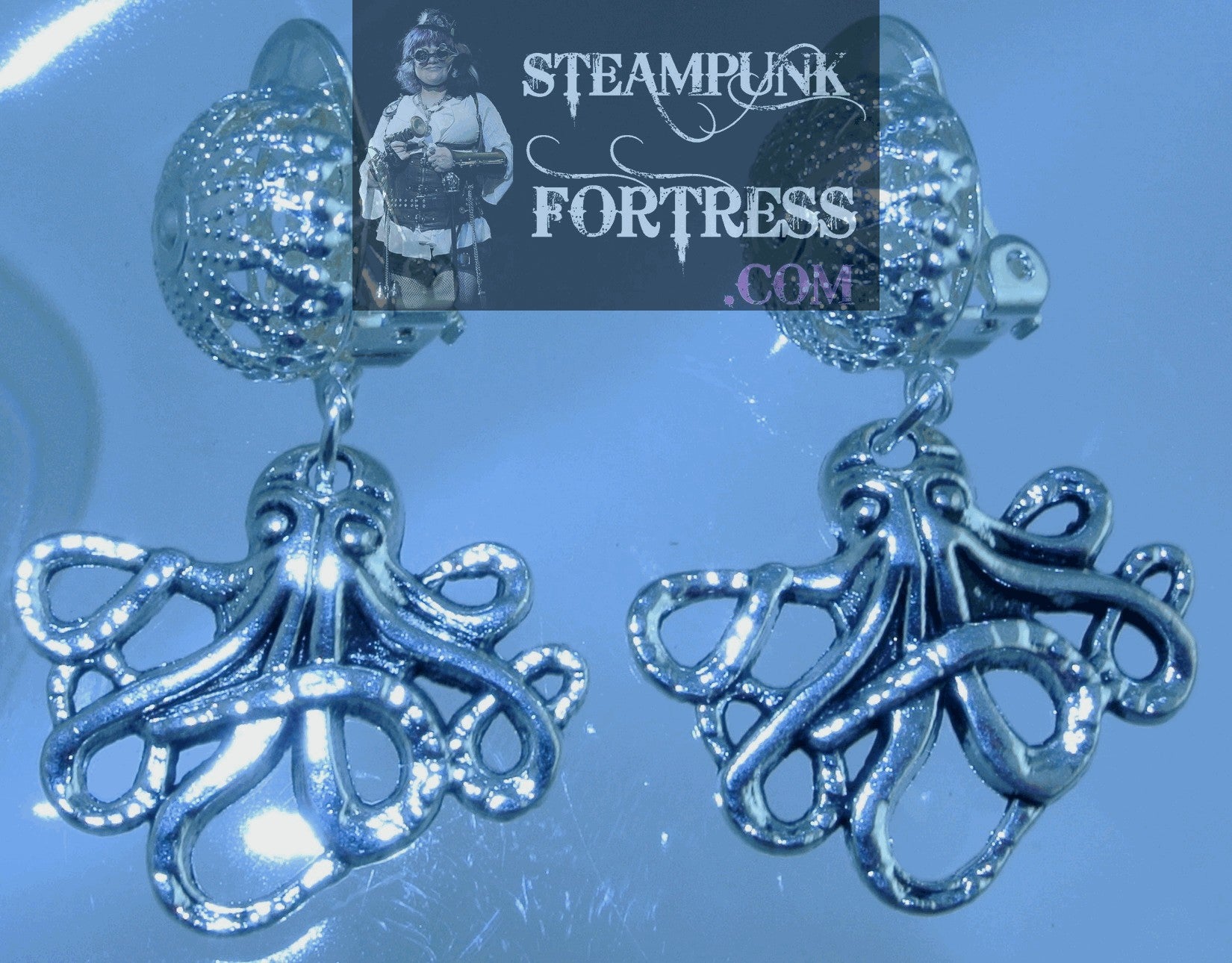 CLIPS SILVER OCTOPUS MEDIUM FILIGREE CLIP ON EARRINGS ARIEL UNDER THE SEA COSPLAY COSTUME HALLOWEEN STARR WILDE STEAMPUNK FORTRESS