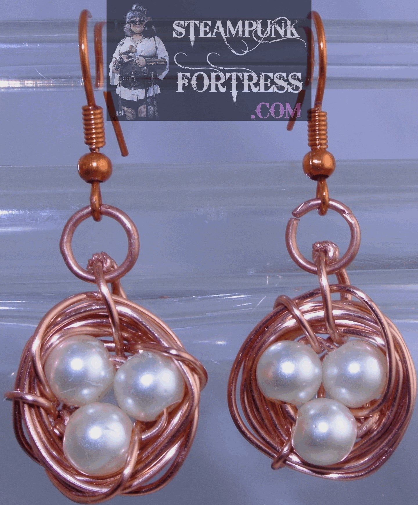 THIS IS A FABULOUS HANDMADE CUSTOM MADE STEAMPUNK DIESELPUNK CYBERPUNK, MEDIEVAL, RENAISSANCE, VICTORIAN, RENAISSANCE, EDWARDIAN, COSPLAY COSTUME COMIC CON...HANDMADE COPPER BIRDS NEST EARRINGS WITH WHITE PEARLS...#1556