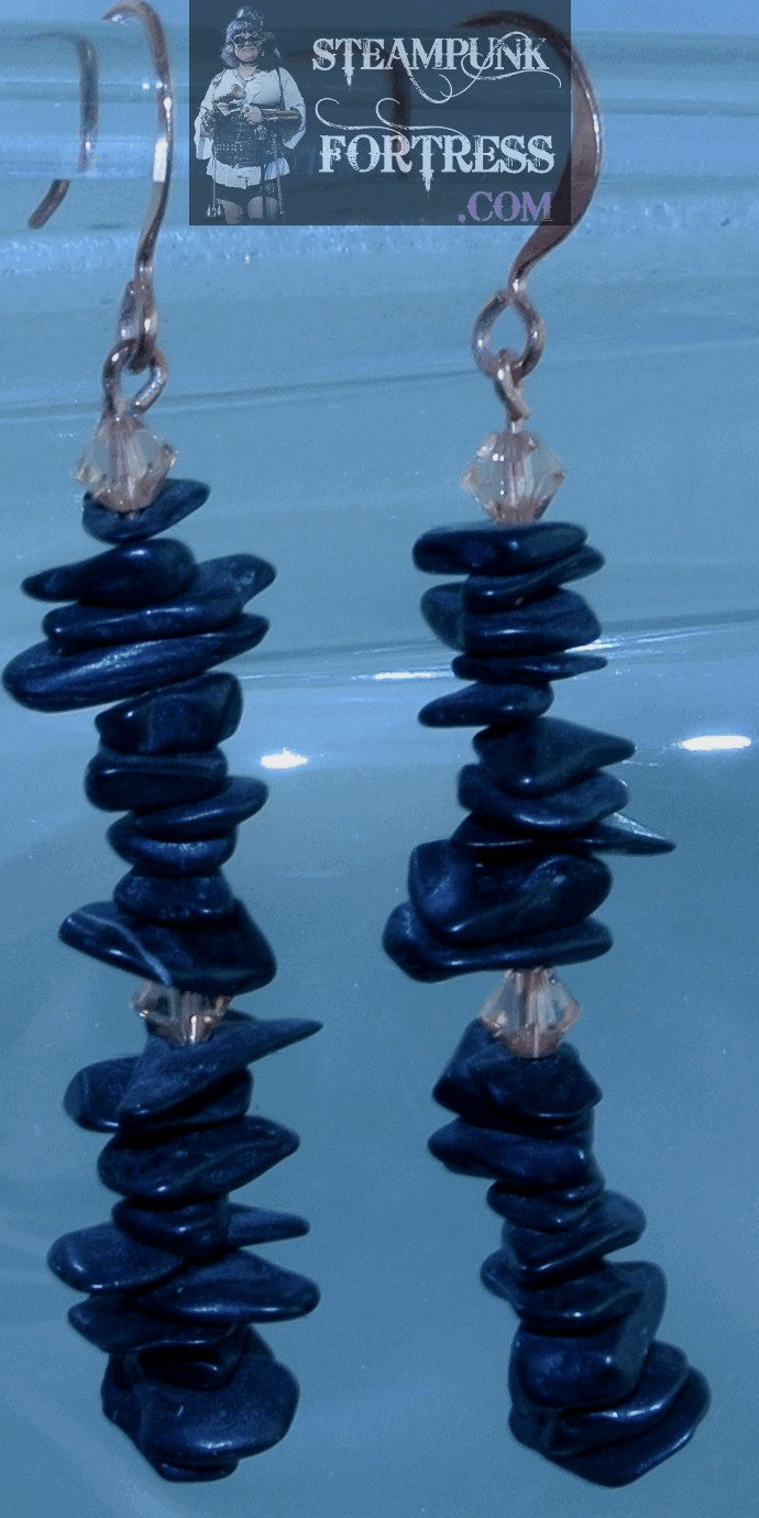 COPPER BRIGHT BLACKSTONE GEMSTONE 20 CHIPS 2 PEACH SWAROVSKI CRYSTALS PIERCED EARRINGS SET AVAILABLE STARR WILDE STEAMPUNK FORTRESS