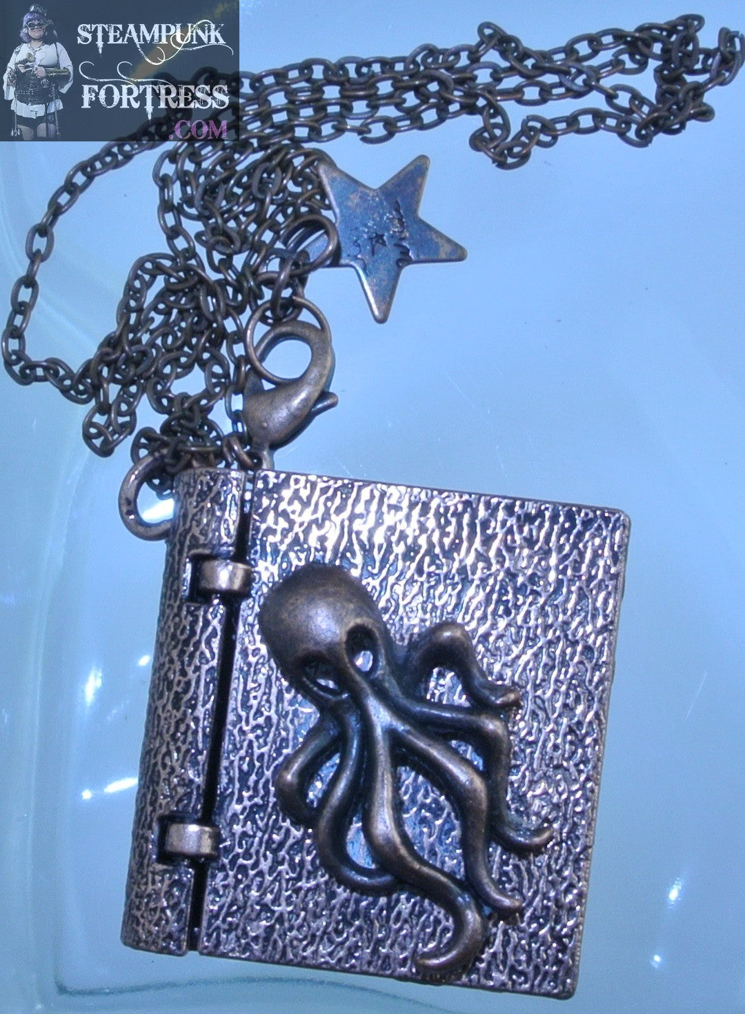 COPPER BRIGHT NECKLACE OCTOPUS BOOK LOCKET THAT OPENS STARR WILDE STEAMPUNK FORTRESS