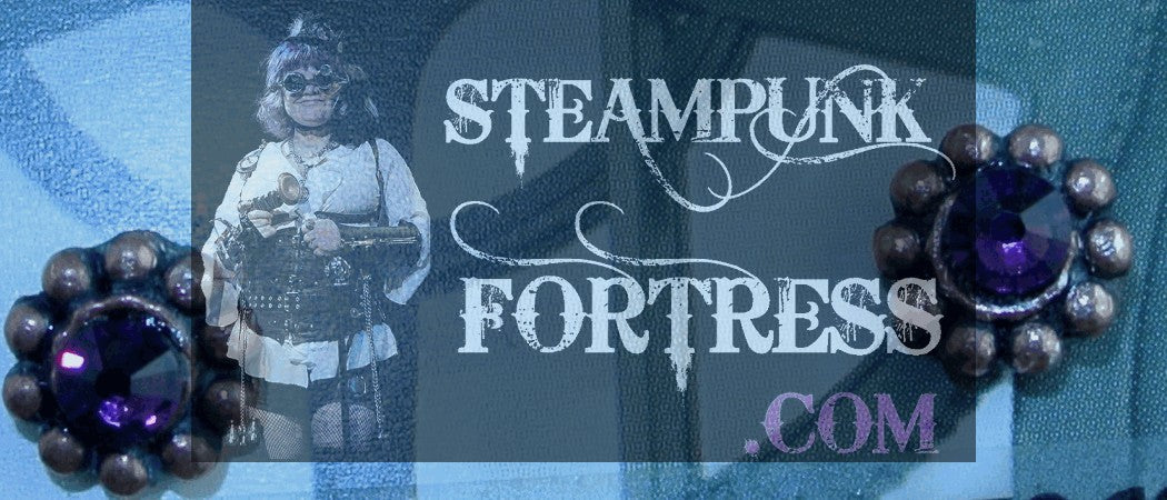 Bags & Purses; Barrettes & Hair combs, Hair Tiaras; Binoculars/Opera Glasses; BTS merchandise- Photocards, custom jewelry etc; Canes- including telescope canes and ones that break down; Clocks; Crossbows-Wrist Gauntlets; Fans; Garters-Arm & Leg for Men and Women; Gauntlets & Bracers (including Vegan options); Gloves; Goggles & Glasses; Hats & Helmets; Home Decor- including Christmas Ornaments & Wreaths; Jewelry- Bracelets, Cufflinks, Earrings- Clips & Pierced, Necklaces, Pins/Brooches, Rings, Tie Tacks & More; Masks; Parasols; Pocketwatches; Purses; Ray Guns; Skirt Lifters; Stockings/Thigh Highs; Tea Dueling Supplies (including Vegan options); Top Hats- Mini & Full; Umbrellas; Vintage Ladies Jewelry Collection- Performers from the Belle Epoque photos into jewelry; Watches; Weaponry-Knives & Swords (Real and Replica); Wings and More. Starr can also repair your precious jewelry, restring pearls, change pierced earrings to clip earrings or clip earrings to pierced earrings. She can also work with you to design a custom piece of jewelry or hat, or weapons etc. She can also customize any piece we have in stock such as adding a veil to a hat, etc. Call or e-mail to make an appointment. Visit our store: Steampunk Fortress.