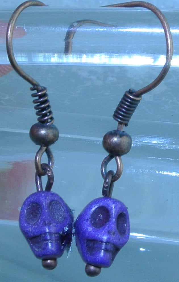 COPPER SKULLS HOWLITE PURPLE TINY GEMSTONES PIRATE HALLOWEEN COPPER PIERCED EARRINGS STARR WILDE STEAMPUNK FORTRESS