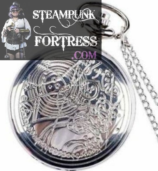 THIS IS A FABULOUS STEAMPUNK DIESELPUNK CYBERPUNK, MEDIEVAL, RENAISSANCE, VICTORIAN, EDWARDIAN, COSPLAY, COSTUME, SDCC, COMIC CON…..MASS PRODUCED.....WORKING POCKETWATCH....SILVER...DR WHO HOME PLANET GALLIFREY ETCHED.. #6432