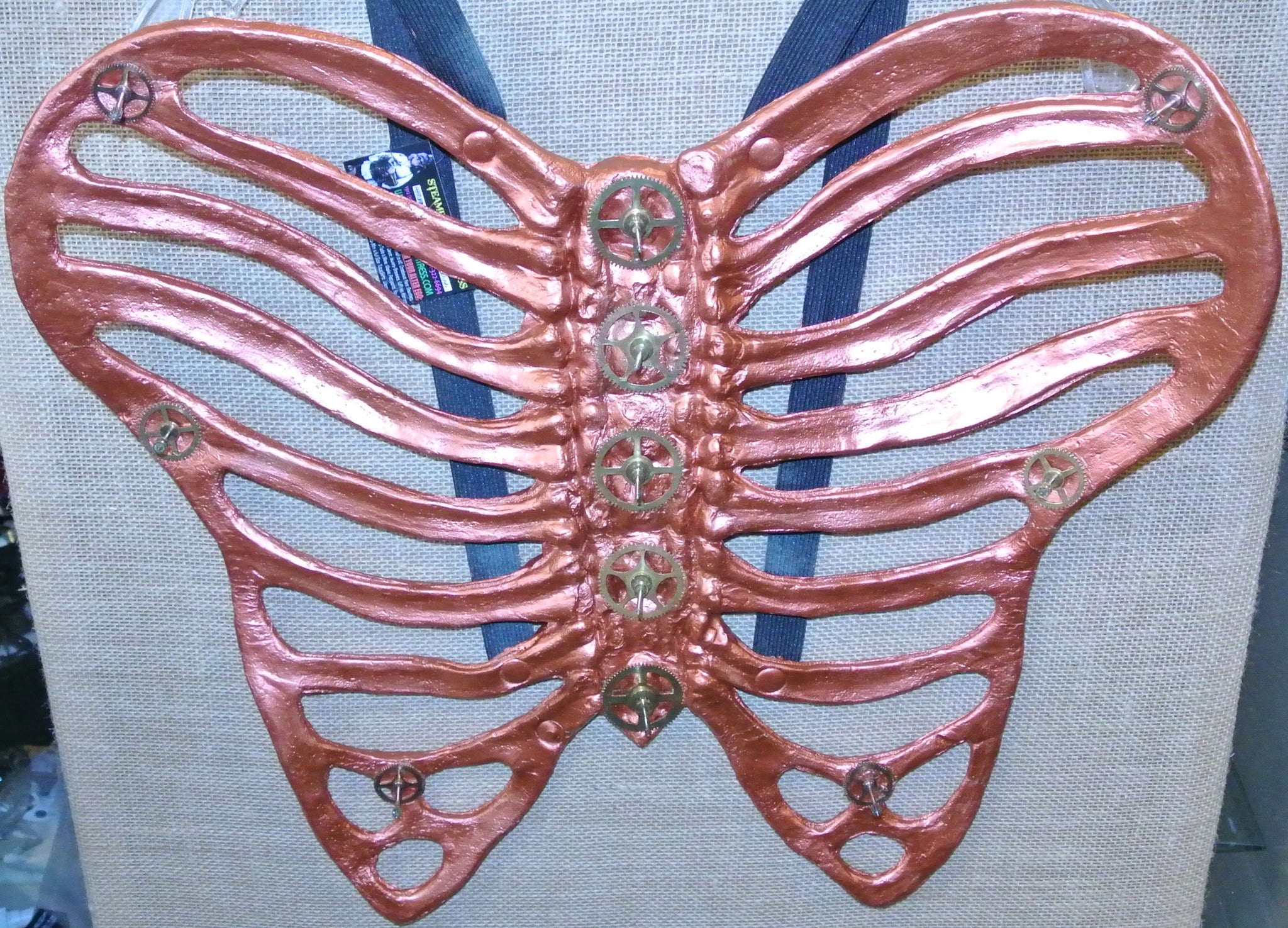 THIS IS A FABULOUS COPPER COLOR FOAM SKELETON SPINE RIBS WINGS...GREAT FOR COSPLAY AT COMIC CONVENTIONS ....THIS ONE HAS 11 GEARS DOWN THE SPINE AND OUTLINING SIDES....#2249