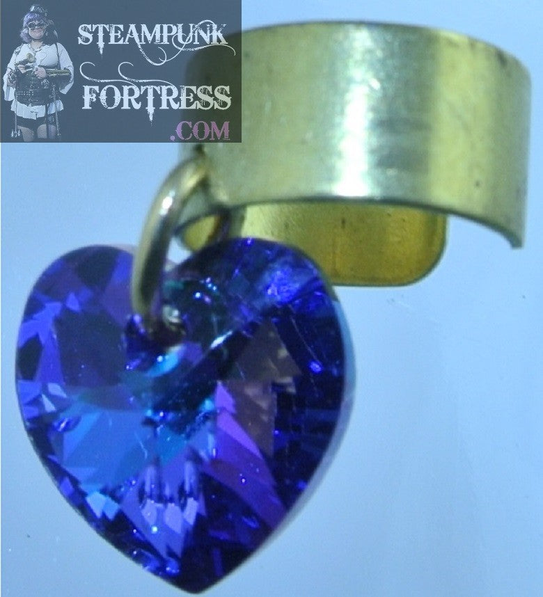 CUFF GOLD HEART HELIOTROPE PURPLE SWAROVSKI CRYSTAL EAR CUFF NON PIERCED NON PIERCING STARR WILDE STEAMPUNK FORTRESS
