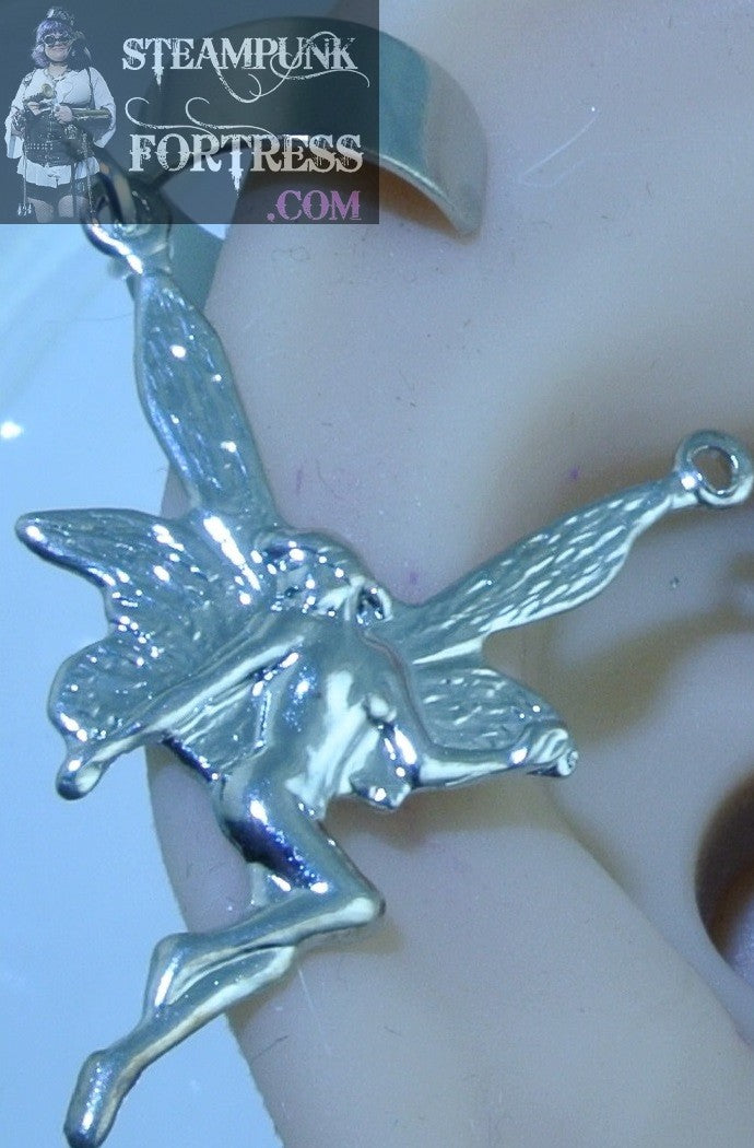 THIS IS A FABULOUS HANDMADE CUSTOM MADE STEAMPUNK DIESELPUNK CYBERPUNK, MEDIEVAL, RENAISSANCE, VICTORIAN, RENAISSANCE, EDWARDIAN, COSPLAY, COSTUME, SDCC, COMIC CON….EAR CUFF HANGER EARRING.....SILVER TONE SOLID BASE WITH SILVER TONE FAIRY....#535