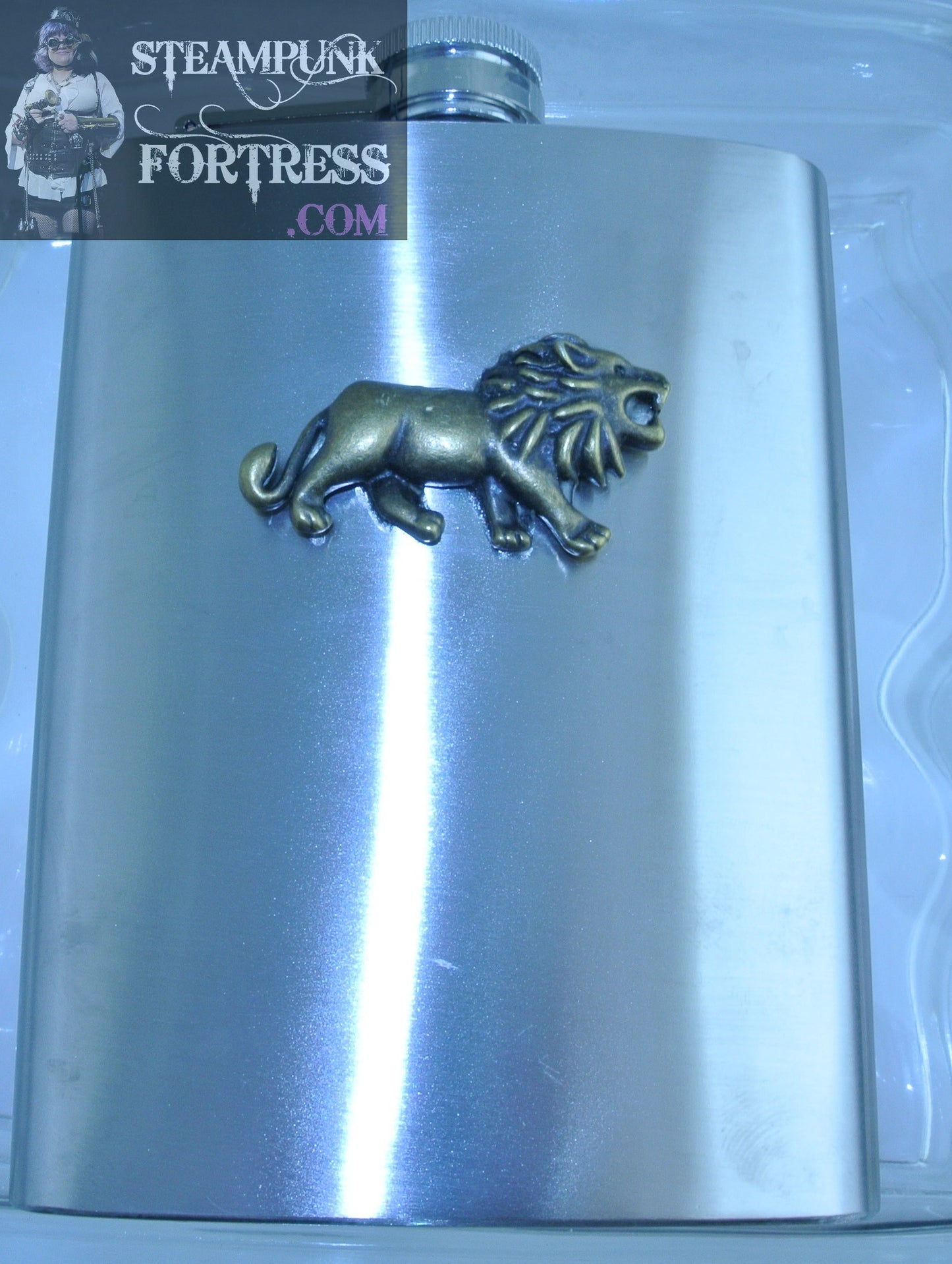 BRAND NEW FLASK SILVER 8OZ BRASS LION STARR WILDE STEAMPUNK FORTRESS COSPLAY COSTUME