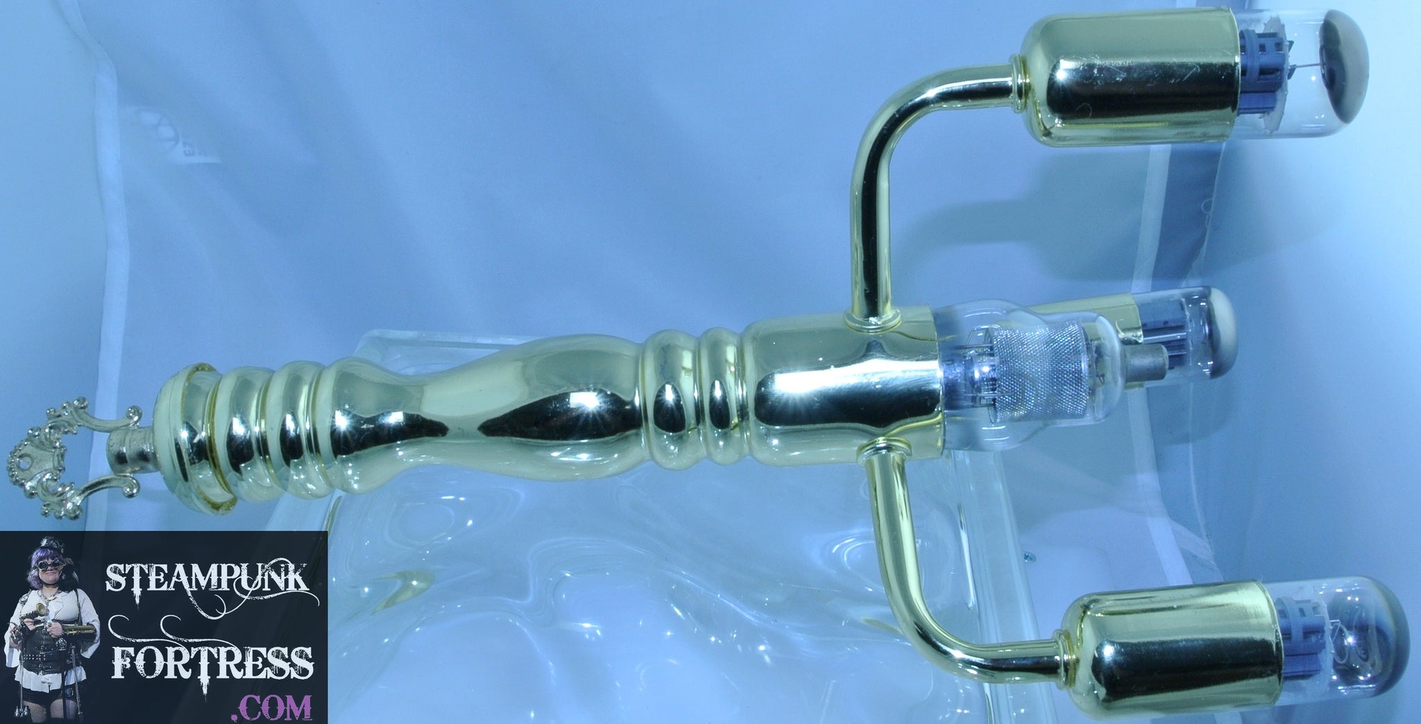 THIS IS A FABULOUS HANDMADE STEAMPUNK RAY GUN CANNON......GOLD 3 ARM ROCKETS IN EACH ARM AND HUGE ROCKET CENTER AND TURN BACK...AS I WAS LISTING IT I THOUGHT IT LOOKS LIKE A STEAMPUNK AQUAMAN COULD PULL THIS OFF........WEIGHS IN AT A REASONABLE 13 OUNCES......#6040