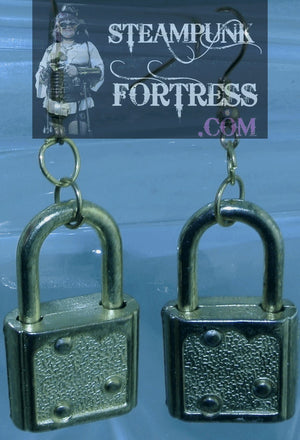 THIS IS A FABULOUS HANDMADE CUSTOM MADE STEAMPUNK DIESELPUNK CYBERPUNK, MEDIEVAL, RENAISSANCE, VICTORIAN, RENAISSANCE, EDWARDIAN, COSPLAY, COSTUME, SDCC, COMIC CON….. GOLD TONE PIERCED EARRINGS........1 GOLD PADLOCK THAT ACTUALLY WORK ON EACH HOOK....#5071