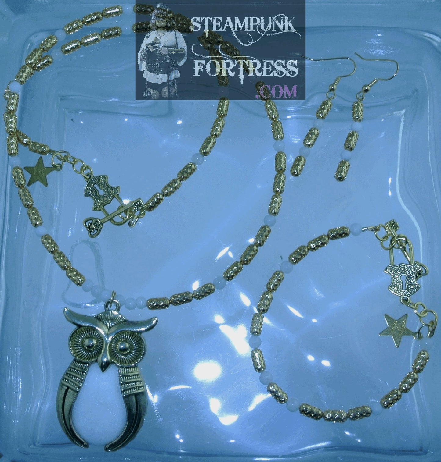 THIS IS A FABULOUS HANDMADE CUSTOM MADE STEAMPUNK DIESELPUNK CYBERPUNK, MEDIEVAL, RENAISSANCE, VICTORIAN, EDWARDIAN, COSPLAY, COSTUME, HALLOWEEN, SCA, SDCC, COMIC CON….GOLD TONE NECKLACE THAT IS ALSO A PIN/BROOCH....OWL....SNOW QUARTZ GEMSTONE BELLY....#3915