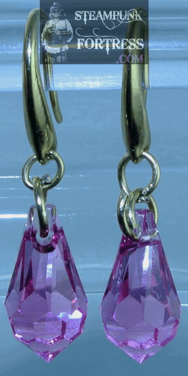 THIS IS A FABULOUS HANDMADE CUSTOM MADE STEAMPUNK DIESELPUNK CYBERPUNK, MEDIEVAL, RENAISSANCE, VICTORIAN, RENAISSANCE, EDWARDIAN, COSPLAY, COSTUME, SDCC, COMIC CON…..PIERCED EARRINGS.....GOLD TONE.....1 PINK TEARDROP SWAROVSKI CRYSTAL ON EACH HOOK...#3499