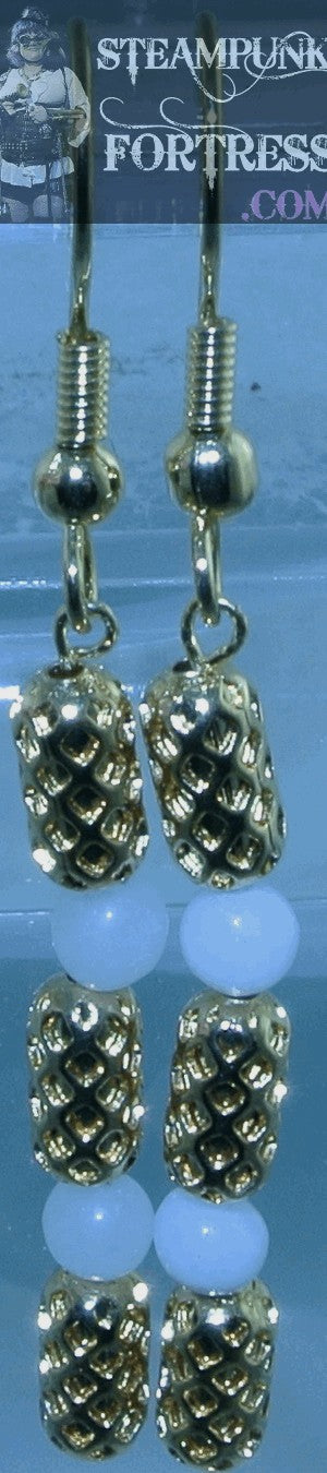 GOLD SNOW QUARTZ GEMSTONE ROUNDS GOLD FILIGREE TUBES PIERCED EARRINGS SET AVAILABLE STARR WILDE STEAMPUNK FORTRESS